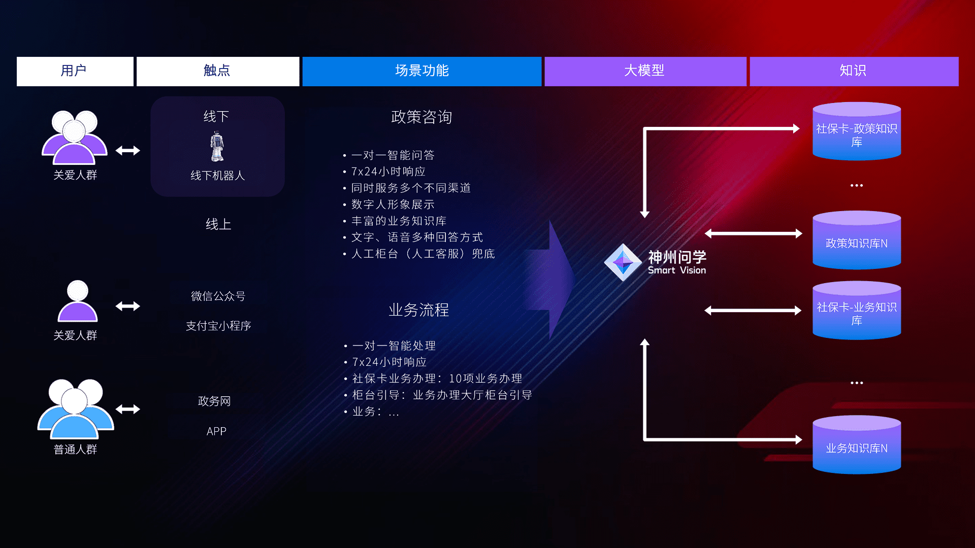 • 线上线下全覆盖:线上提供微信公众号、、、支付宝小程序、、政务网、、app多种渠道,,,与线下机器人形成完整服务体系。。